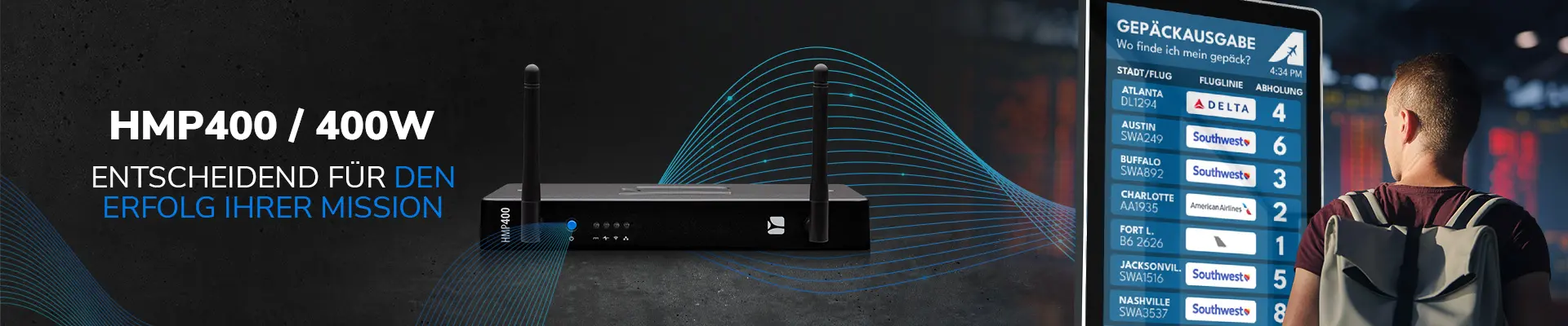 In der Schweiz entwickelt und in Deutschland hergestellt, bietet unser HMP400 bzw. unser HMP400W eine Drei-Jahres-Garantie. Diese ist auf fünf Jahre verlängerbar. Gebaut, um in schwierigster Umgebung zu funktionieren, sind sie staubresistent und PoE+ (Power over Ethernet+) und WLAN*-fähig. Sie sind in der Lage, während eines Zeitraumes von zehn Jahren ununterbrochen ein 4K-Bild mit sechzig Bildwiederholungen pro Sekunde zu liefern.