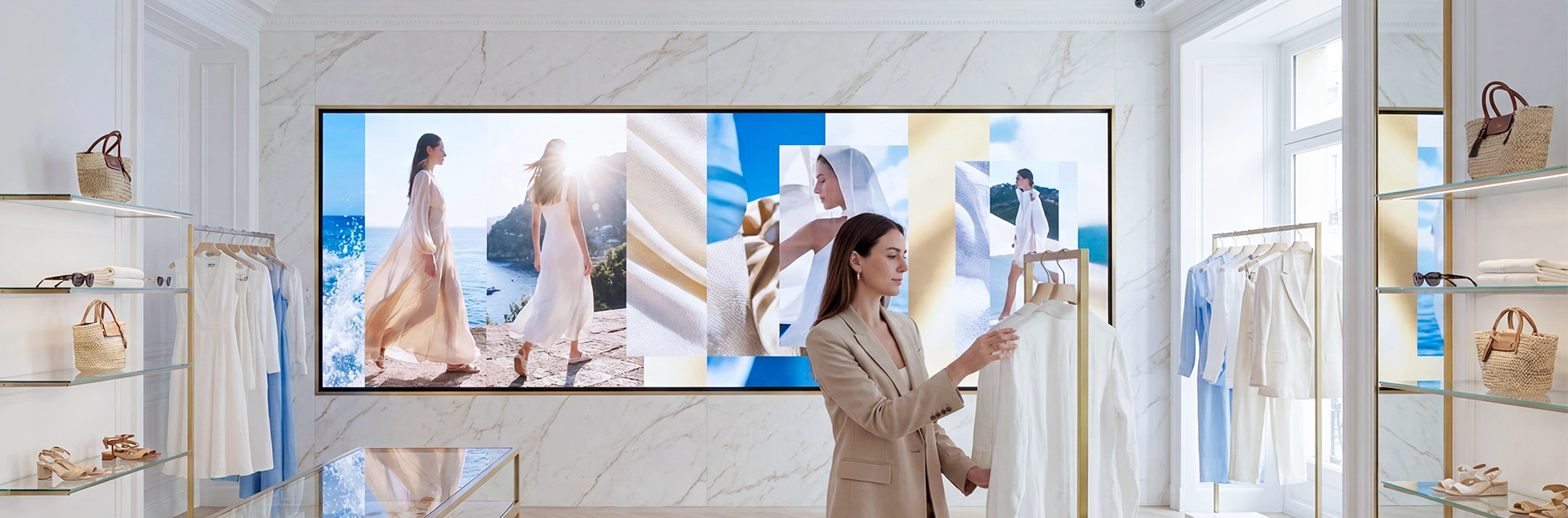 Les murs LED et les écrans immersifs mettent en valeur les collections, soulignent le savoir-faire et renforcent les valeurs de la marque grâce au storytelling visuel.