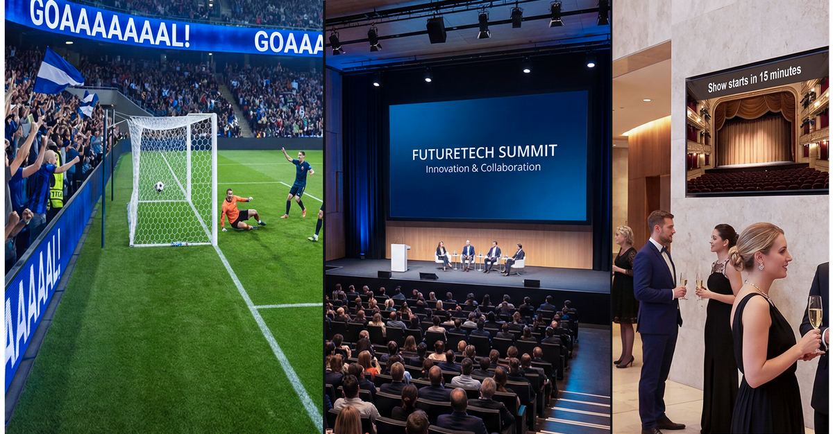 Les démonstrations sur notre stand à l’ISE sont conçues autour de cas d’usage réels par secteur. Venez découvrir comment SpinetiX déploie une signalisation immersive et orientée expérience pour les environnements Corporate, le Luxury Retail, les grands lieux publics, les sites industriels, et bien d’autres encore.